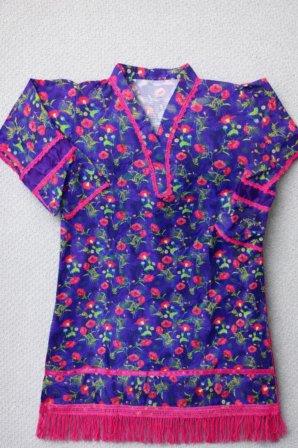 Design: Floral Print with Lace & Fringe Work