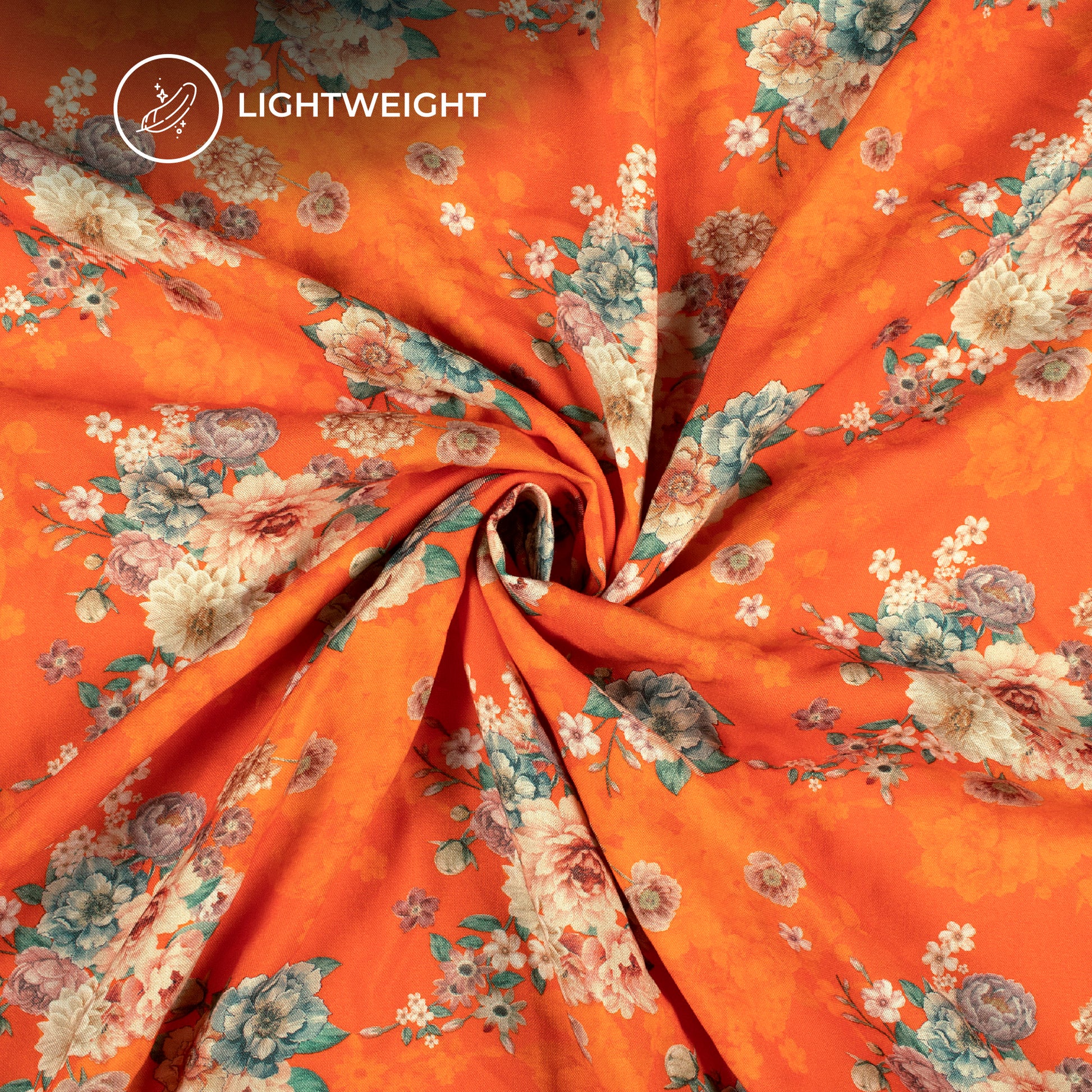 Fire orange Floral Digital Print Viscose Khaddar Fabric